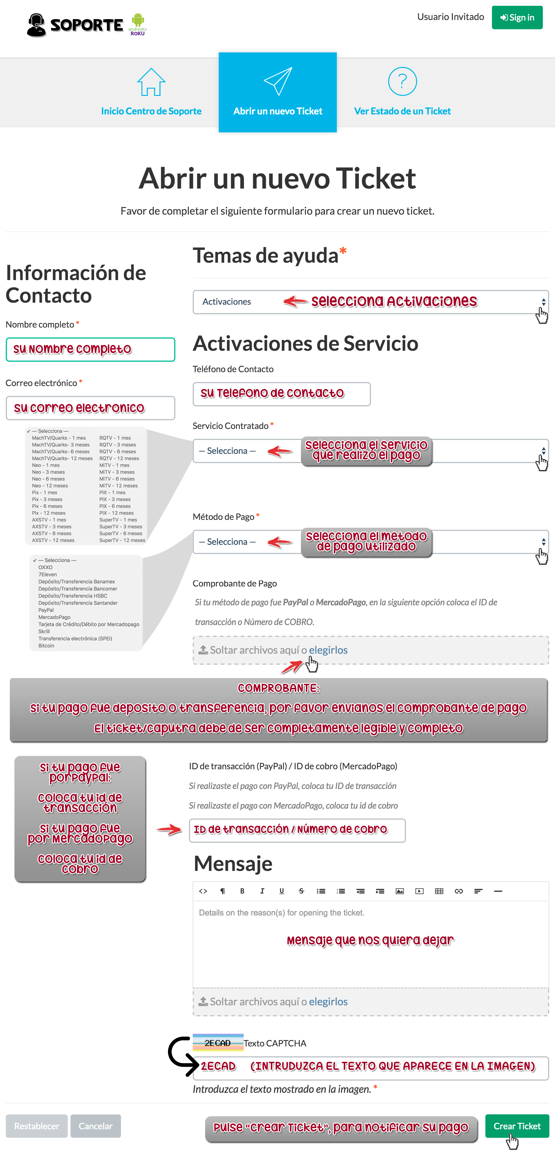 ATENCIÓN: Si al crear el ticket le marca error, por favor corrija los campos en rojo