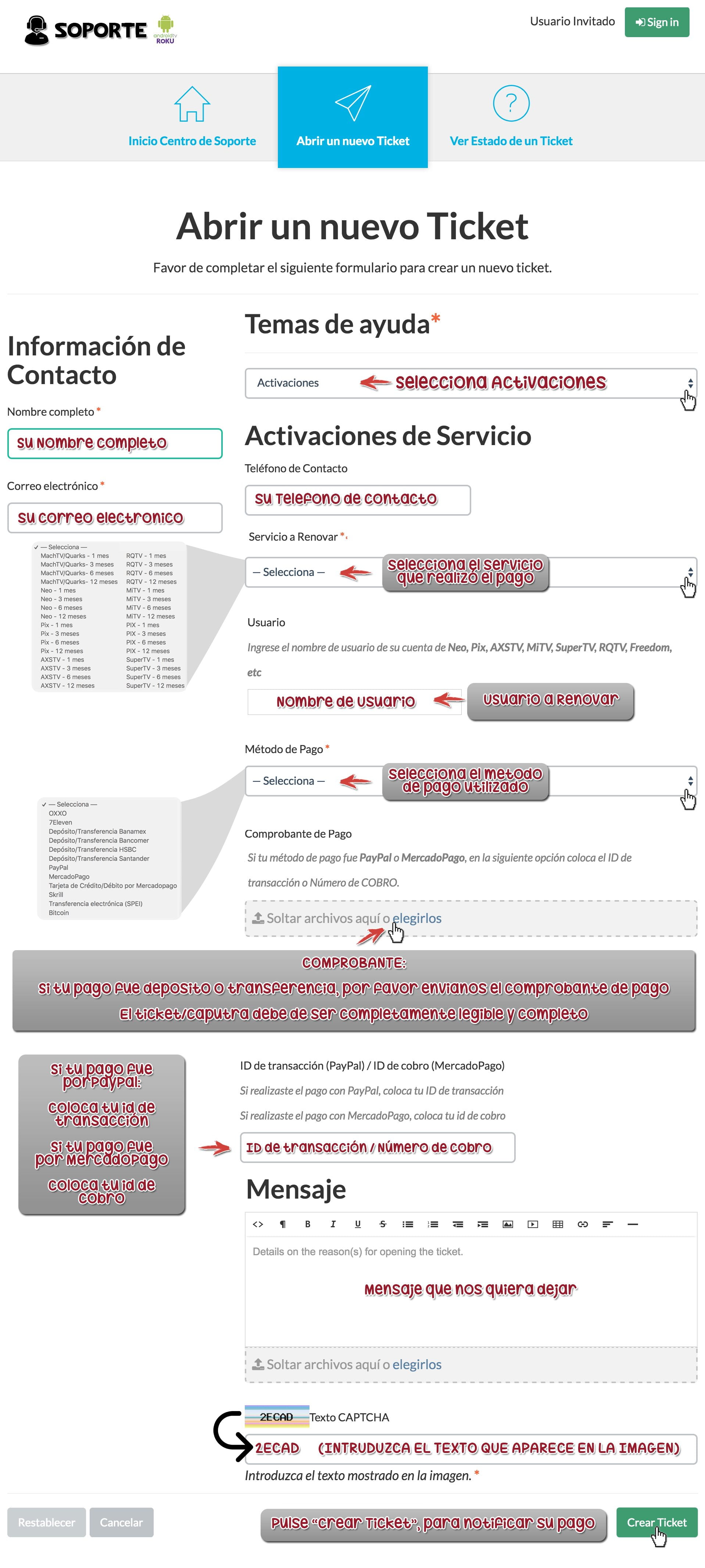 ATENCIÓN: Si al crear el ticket le marca error, por favor corrija los campos en rojo